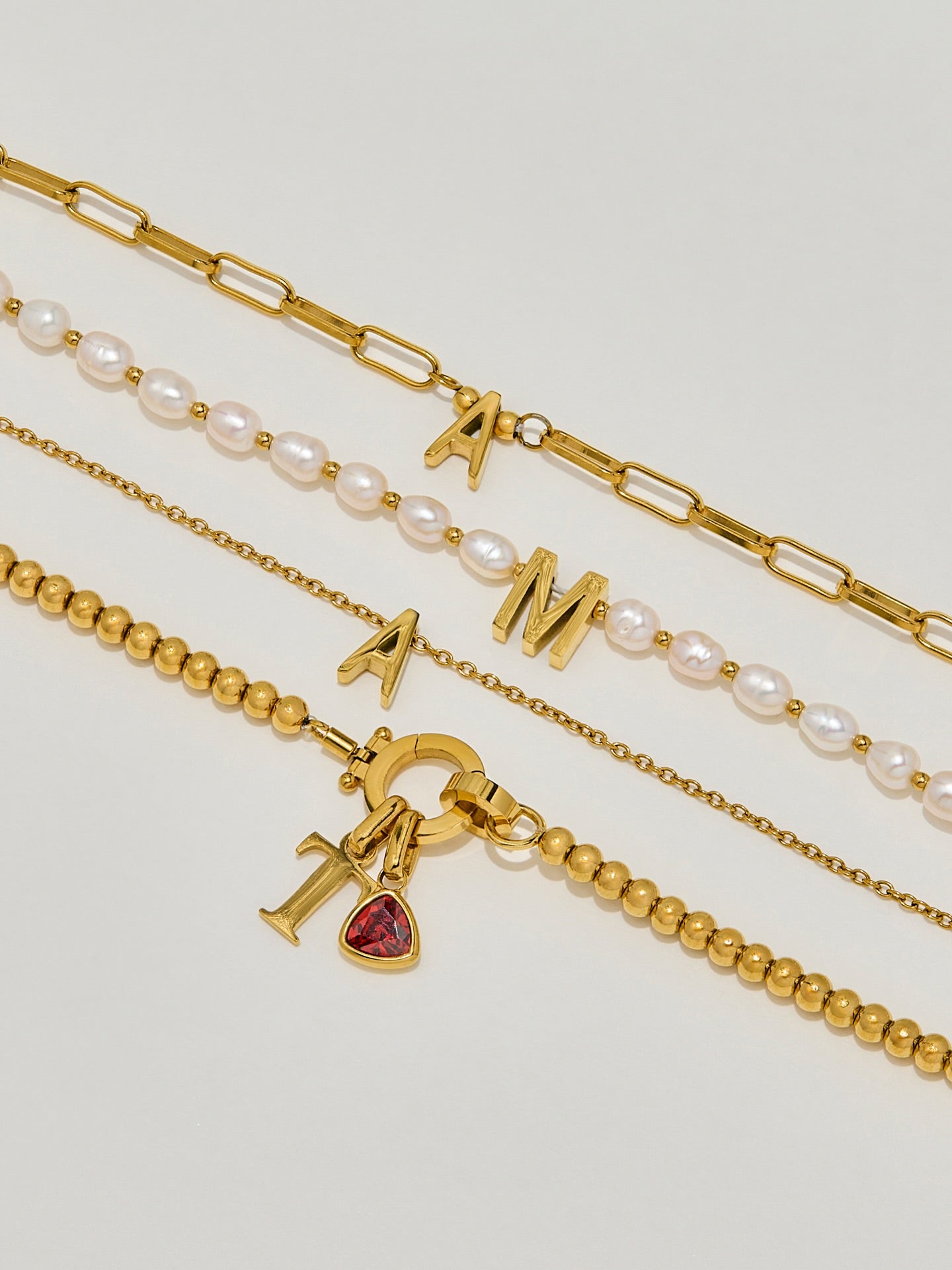 Bracelet Initiale Perlé à Pierre de Naissance